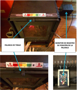 Para abordar este problema, el presente estudio se propuso analizar cómo incide la información acerca de los niveles de contaminación de las estufas en el comportamiento de uso de las familias. Se diseñó un Ensayo Controlado Aleatorizado, que consistió en una intervención conductual en 80 hogares valdivianos entre agosto y septiembre de 2017, entregando a 52 familias una señalética metálica que se alinea con la palanca de tiraje de la estufa, informando a los usuarios el nivel de emisiones asociado al ajuste elegido (Figura 1). Otras 28 familias fueron estudiadas como grupo de control.